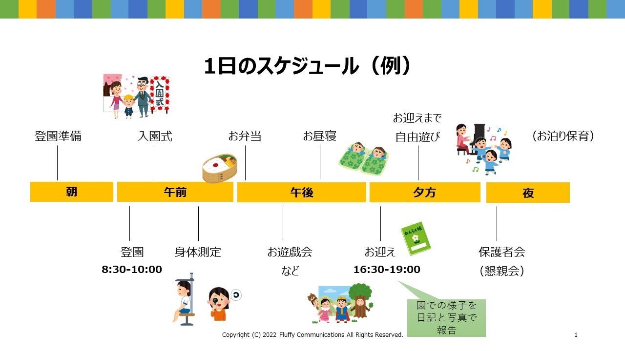 ※全日程参加される方のために、保育園のイベントは全日程(4日間)異なる企画をご用意しています。楽しみになさっていてください。