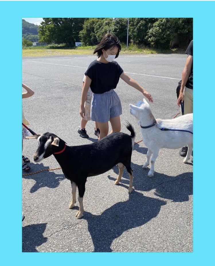本当に沢山の思い出ができました!!鶴見では、遠くから会いにきてくださった方とお話ができたり、岡山ではあの美しい海と夕日が交わった景色を忘れることができません。地球の美しさ、また人の温かさを知りました。東京では考えられない、保護ヤギのペルメリが歩いて登場してきた時は感動でした!会いたかった保護ヤギのお世話をしているRuiさんに直接会えたのも嬉しかったです!!本当に心の優しい人で思っていた通りの人でした!!会場にきてくださった方、皆さんが早い時間に来てくださって、一緒に準備をしてくださったのには驚きました。不慣れな私達を「来てくれるだけで嬉しい!」と・・・とにかく私の中で「優しさ」「安心」という不思議な空間でした。