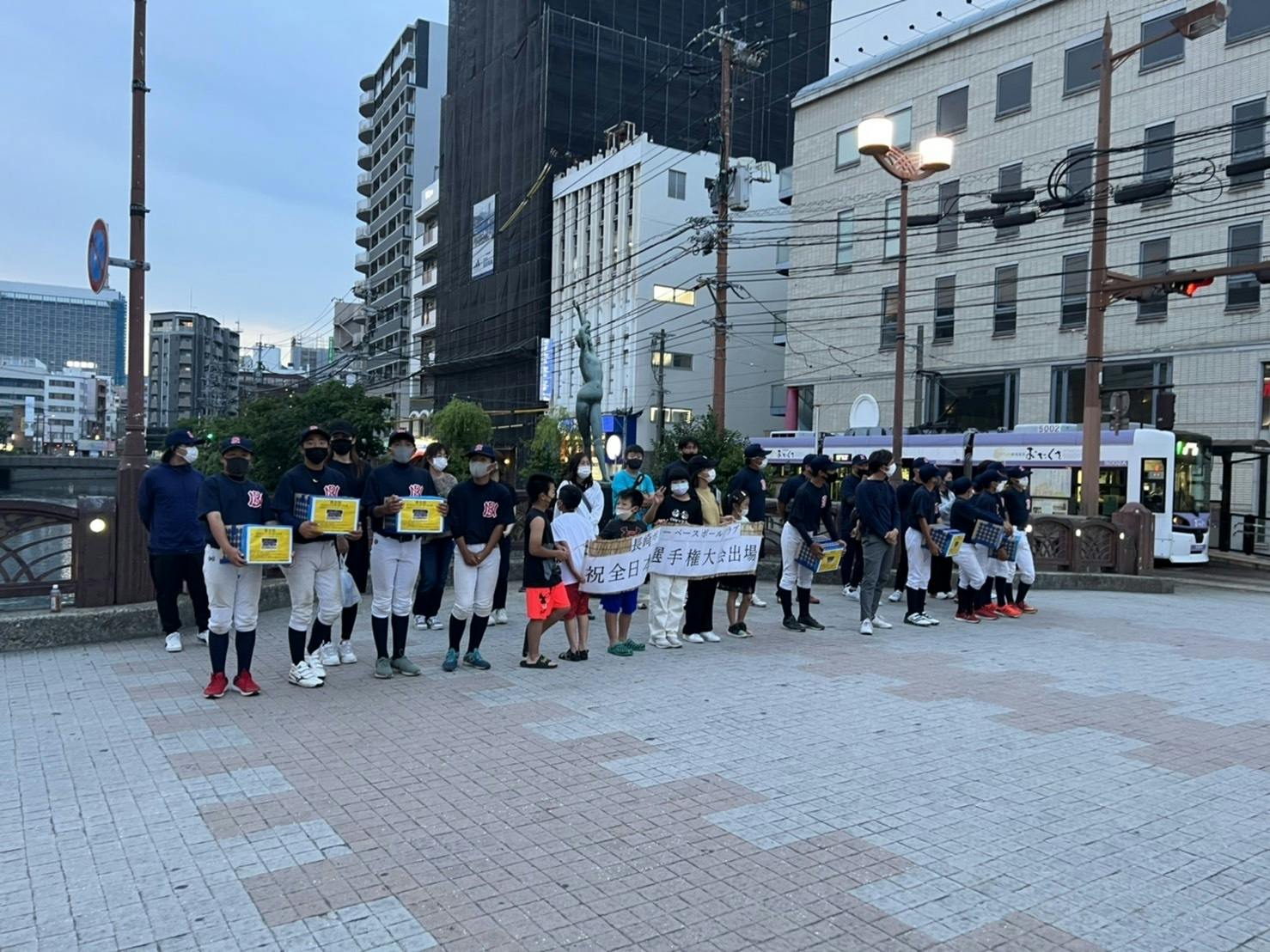 7月22~27日に東京で開催されるポニーベースボール一年生全国大会に長崎から出場が決定しました。メンバー全員での街頭募金、保護者会でのタオルの物販と資金調達を行っておりますがなかなか難しい現状ゆえ今回のプロジェクトを発足しました。全国の皆様どうぞ温かい御支援をお願いいたします。