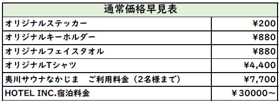 夷川サウナなかじまのご利用詳細は以下の予定です。