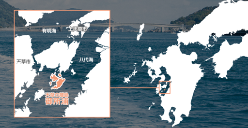 熊本県有数の有人離島である御所浦は、「ゆりかごの海」とも表現される穏やかな内海、不知火海にあります。御所浦という地名は、景行天皇の巡幸時に行宮が置かれたという伝説にちなむといわれています。御所浦町は御所浦島、牧島、横浦島の3つの有人島を含む大小18の島々からなり、有人島の総面積は約20平方キロメートル、人口は約2,500人(令和4年現在)ほどです。