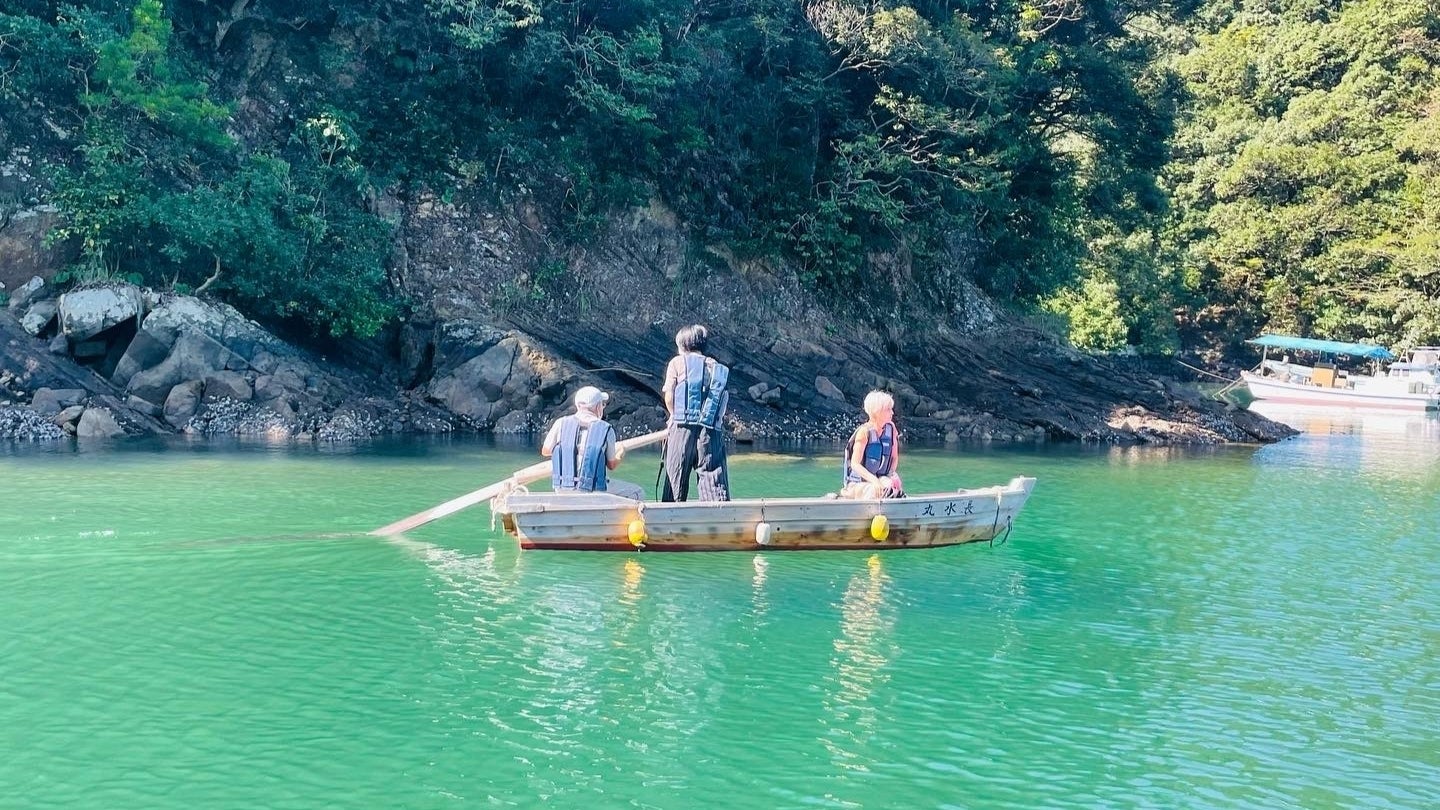Point … リアス式海岸による美しい入り江が多い! 内海なので波がとても静か。「凪」の状態が多い! 川が少なく海の透明が高い! フェリー+定期船+海上タクシー等、船が日常文化! 伝馬舟(和舟)櫓漕ぎ体験!