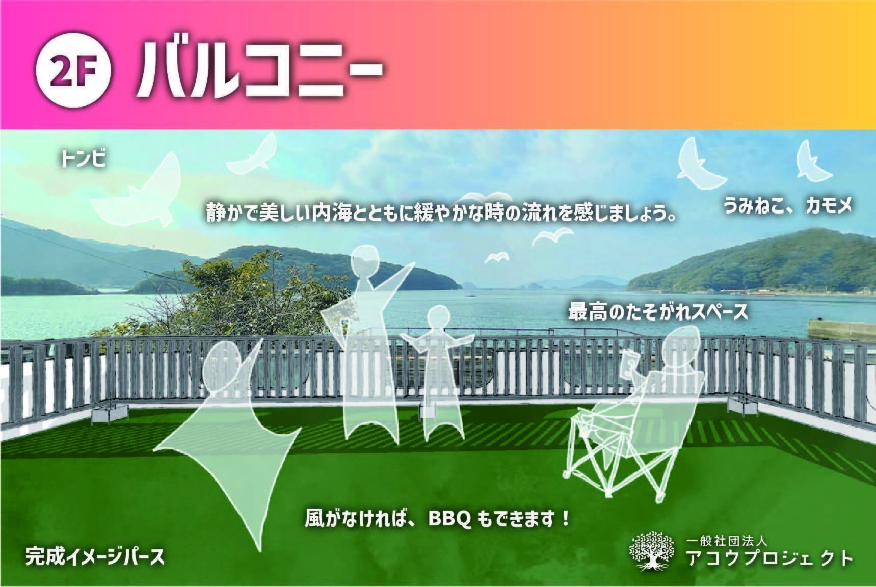 この施設を滞在と活動の拠点にして、利用者の御所浦滞在をアクティブかつリフレッシュできるような場所を目指します。ほかにも地域住民の交流拠点としての機能も充実させ、持続可能な地域づくりにも貢献したいです。(詳細は後述します)