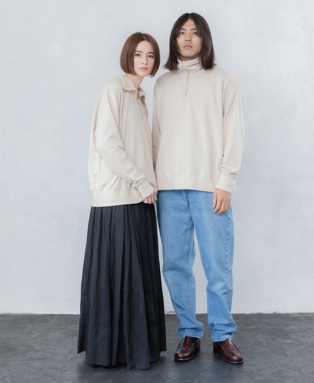 春〜夏の商品に使っている生地は着心地重視の綿の使用、なめらかさと毛羽立ちの少ないコーマ糸を使用した肌触りの良いワッフル素材、シャリ感とドライタッチな風合いが特徴の素材のカーディガンなど、 着たら笑顔になれる生地感を選んでいます。