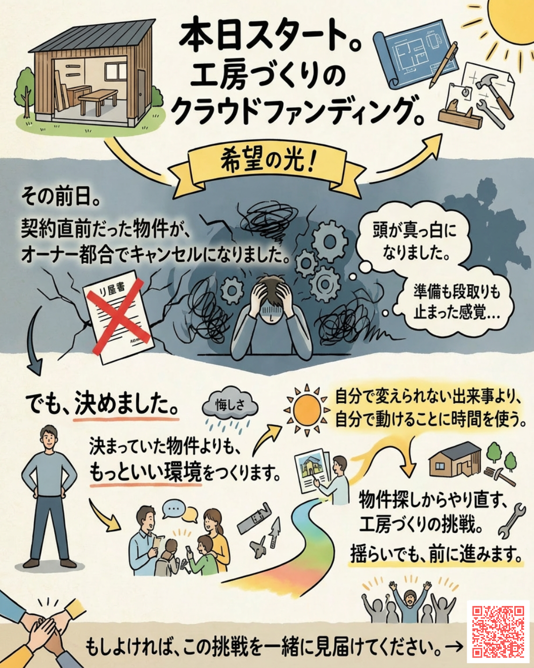 「物件探し」からやり直す、工房づくりの挑戦です。