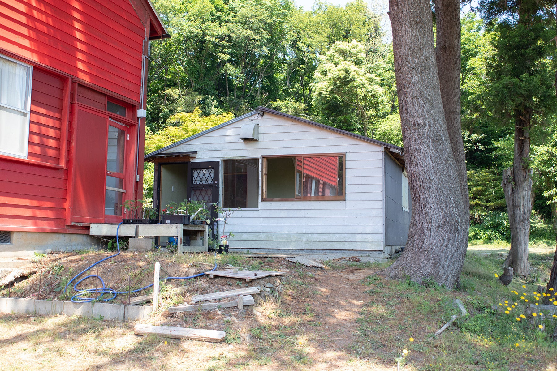 1980年までここに兜地区の中学校がありました。その校舎を取り壊し、専門学校の合宿所が建てられたそうです。小栗さんが横浜から移住を決めて物件を探していたとき、偶然この場所と巡り合い、宿としてリノベーションしました。児童公園やゲートボールで使われていたグラウンドに、グリーンのヤギ小屋を建ててヤギ牧場として活用しています。学舎としての雰囲気が残っていて楽しくて素敵な場所です。