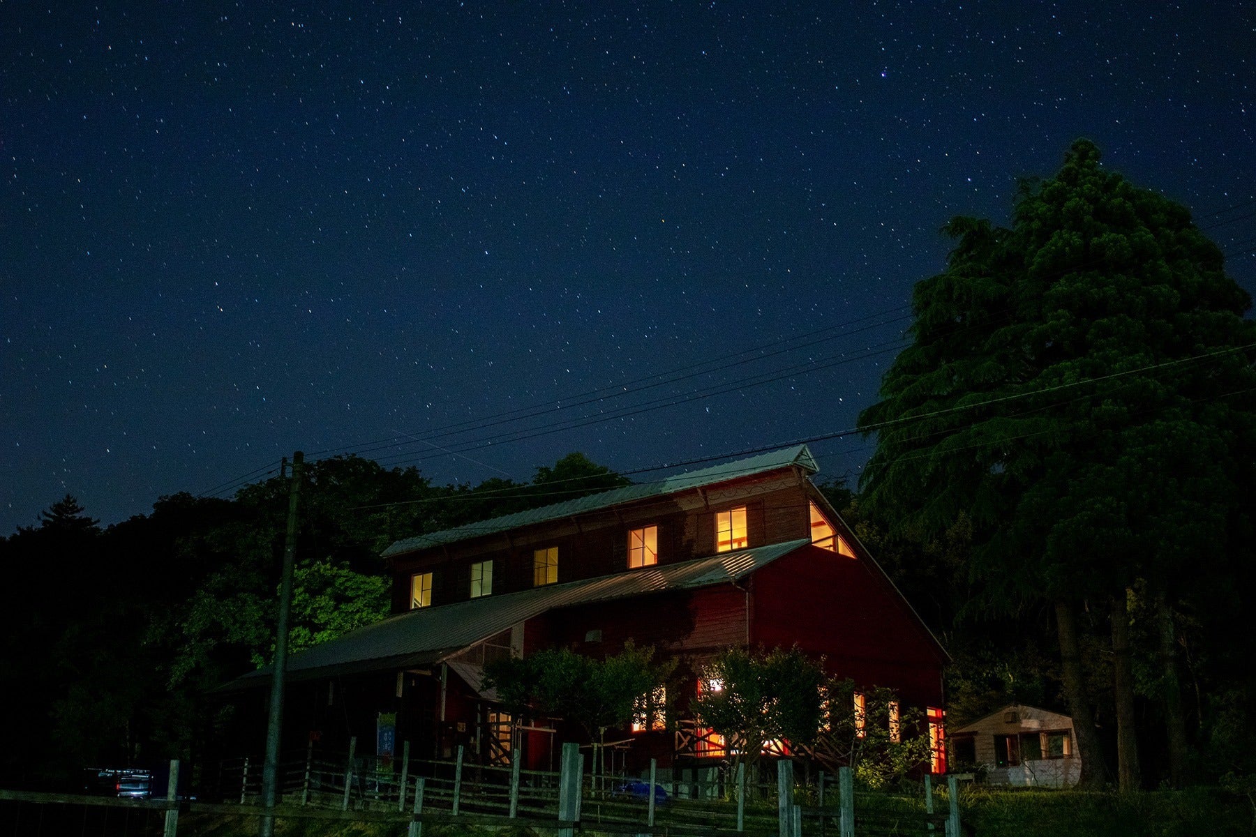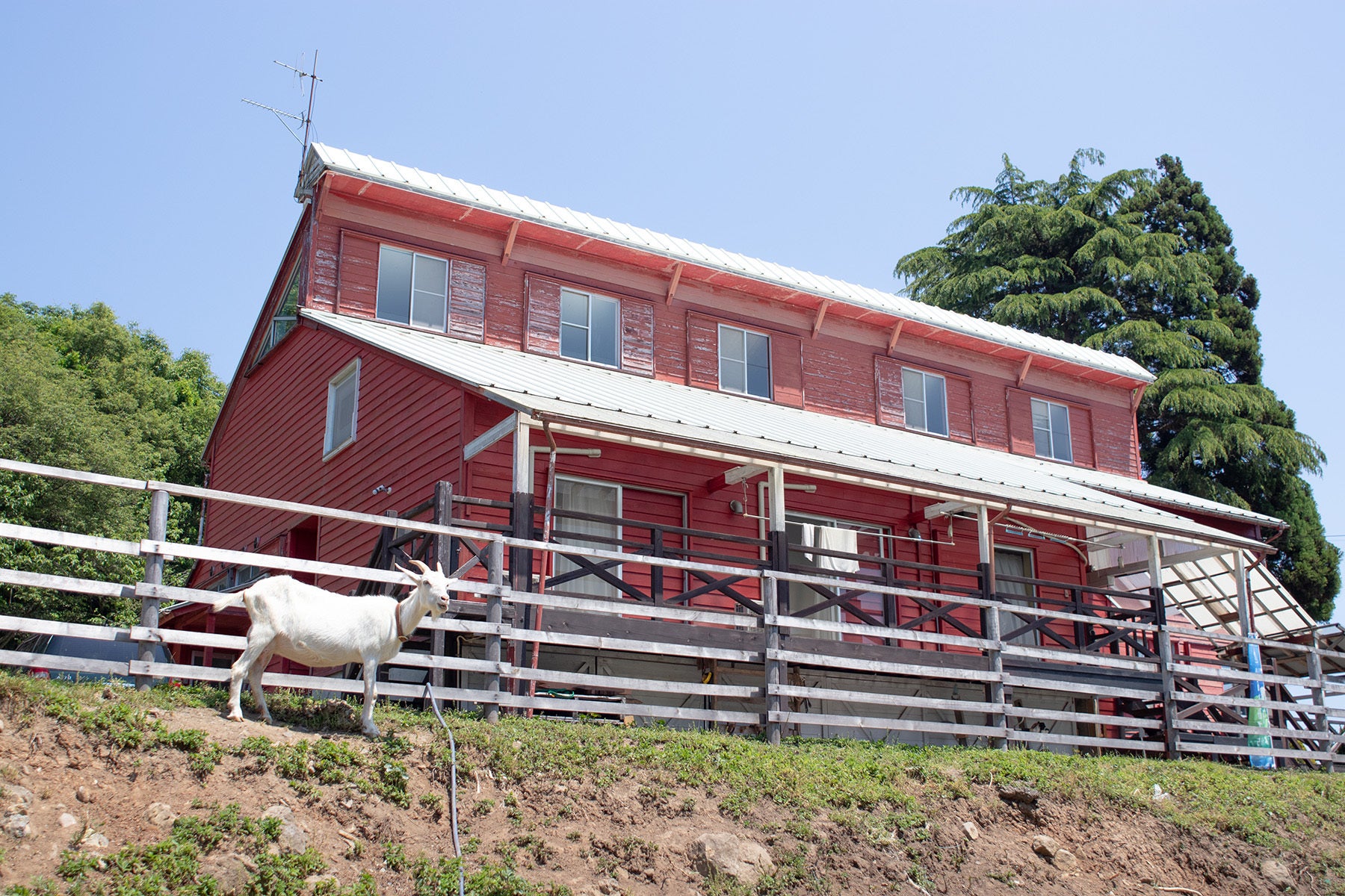 1980年までここに兜地区の中学校がありました。その校舎を取り壊し、専門学校の合宿所が建てられたそうです。小栗さんが横浜から移住を決めて物件を探していたとき、偶然この場所と巡り合い、宿としてリノベーションしました。児童公園やゲートボールで使われていたグラウンドに、グリーンのヤギ小屋を建ててヤギ牧場として活用しています。学舎としての雰囲気が残っていて楽しくて素敵な場所です。