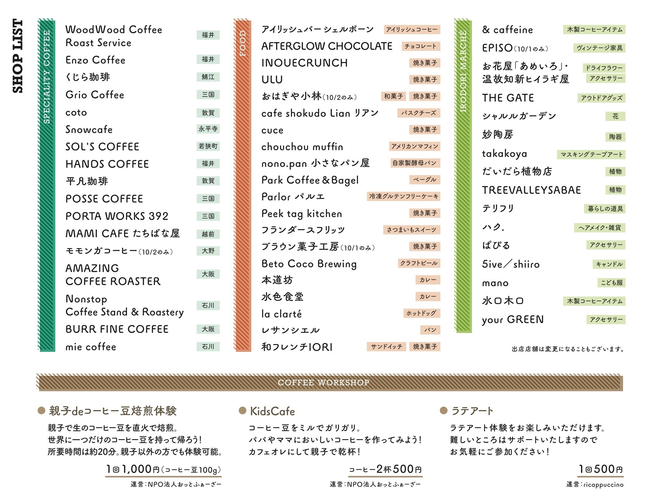コーヒー彩りマルシェブース出店店舗 全16店舗