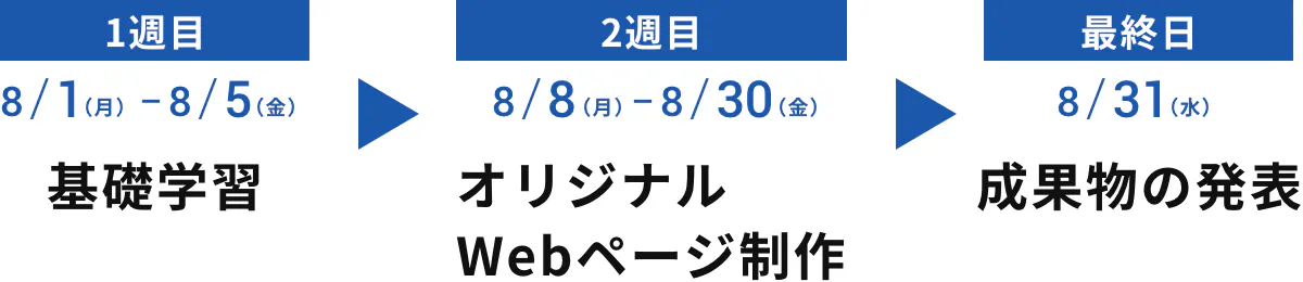 2週目以降は、各自オリジナルのWebサイト制作に励んでいただき、最終日には成果物の発表を行ってもらう予定です。