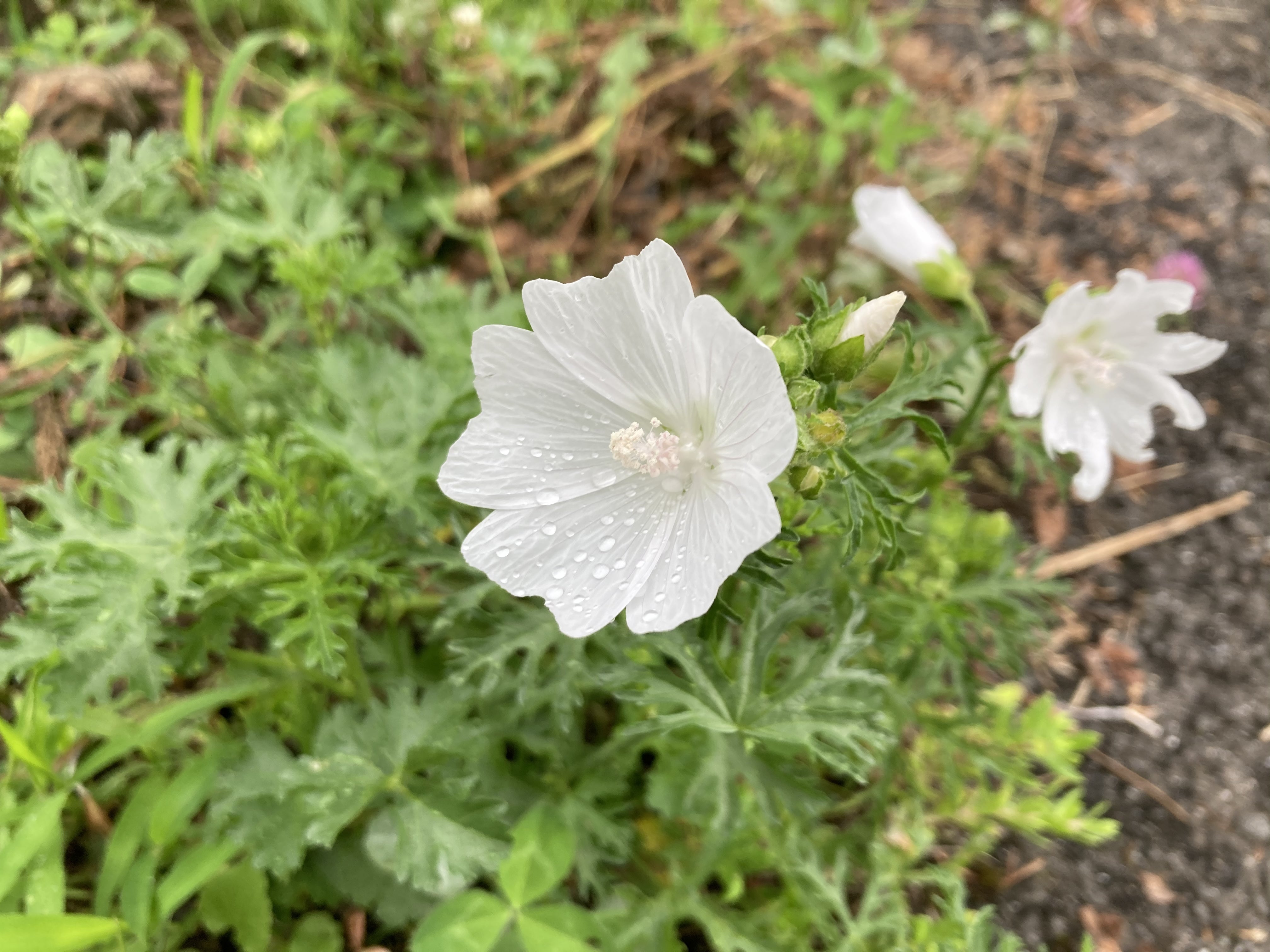 今日は久しぶりにお庭に新しいお花を見つけました。雨の中、白く輝くお花にほっと癒されました。