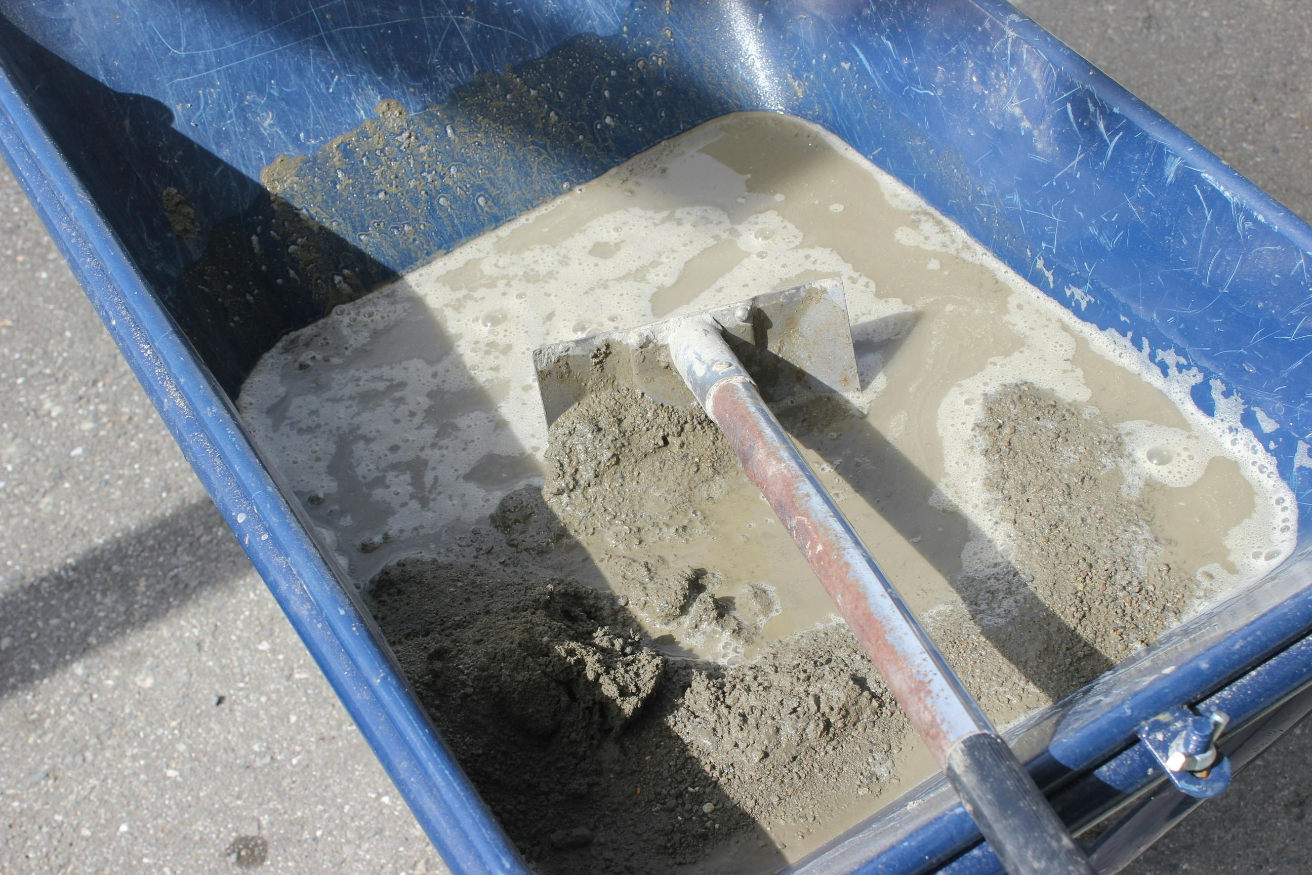 砂とセメントと水を混ぜているところ