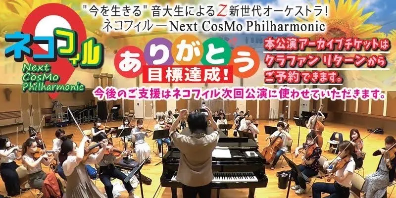我々ネコフィルは、音大生ならではの新たな発想と若さあふれる「新時代コンサート」を更に皆様に楽しんでいただくために、今後皆様からいただくご支援は「ネコフィル次回公演企画のための準備費」として使用させていただきます。