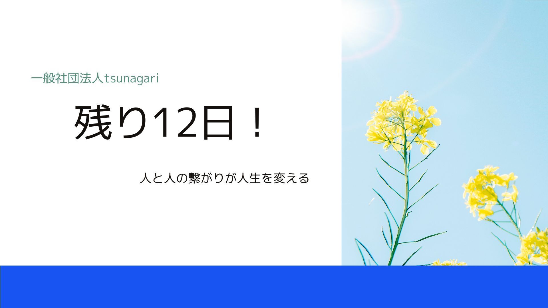 いつも、活動報告を見て頂きありがとうございます。クラウドファンディング終了まで8日!!残り8日!!と言いたいところですが、あと1時間で7日になります。笑1週間後には、オンライン講演会も実施されます!とても豪華な方が講演者なので是非ご参加下さい!!* 当事者・学生無料!申し込みサイト毎日トークショースケジュール毎日トークショーも行なっていますので、是非ご興味がある方は遊びに来てください当日ご参加出来ない方は、インスタグラムでアーカイブを残していますのでお時間合う時にご覧ください。 松川Instagram残り1週間精一杯頑張りますので、応援よろしくお願いいたします。一般社団法人tsunagari