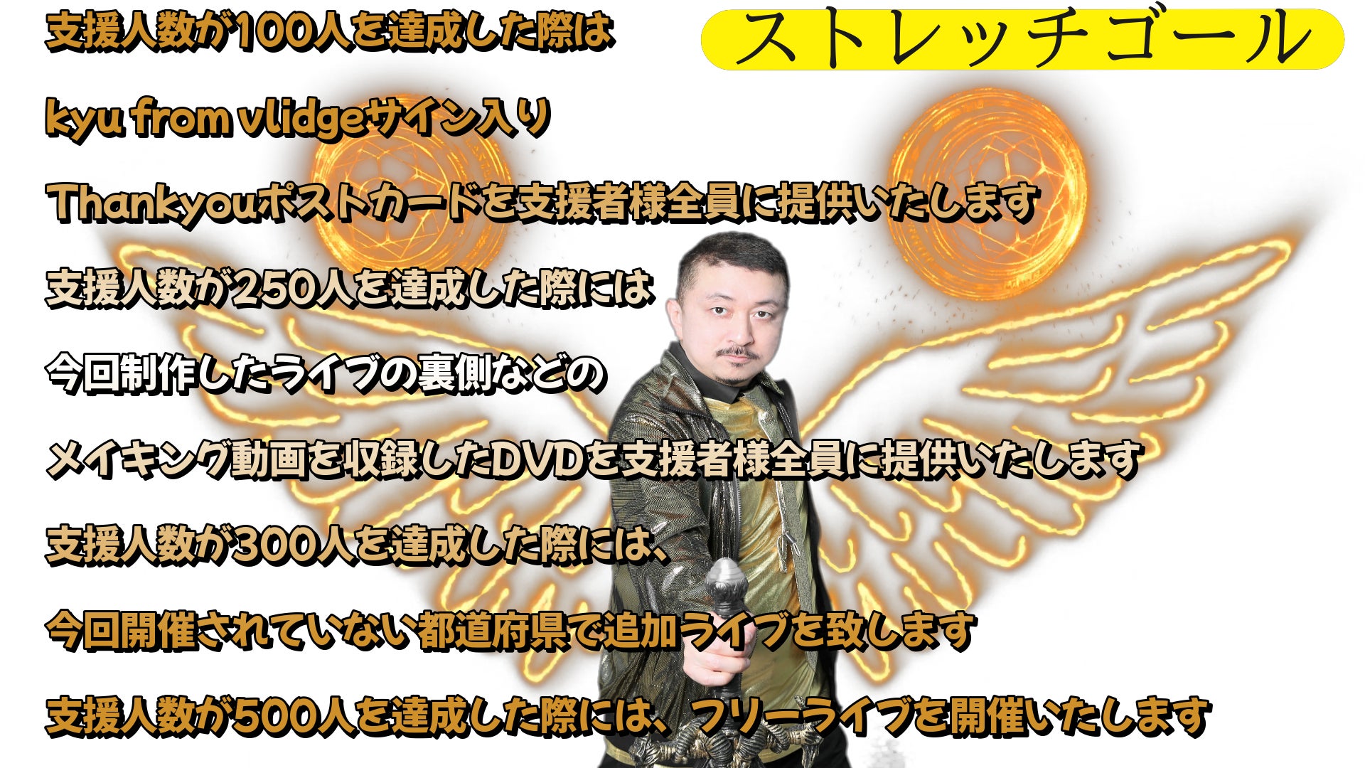 A.支援人数が100人を達成した際は、kyu from vlidgeサイン入りThankyouポストカードを支援者様全員に提供いたします。