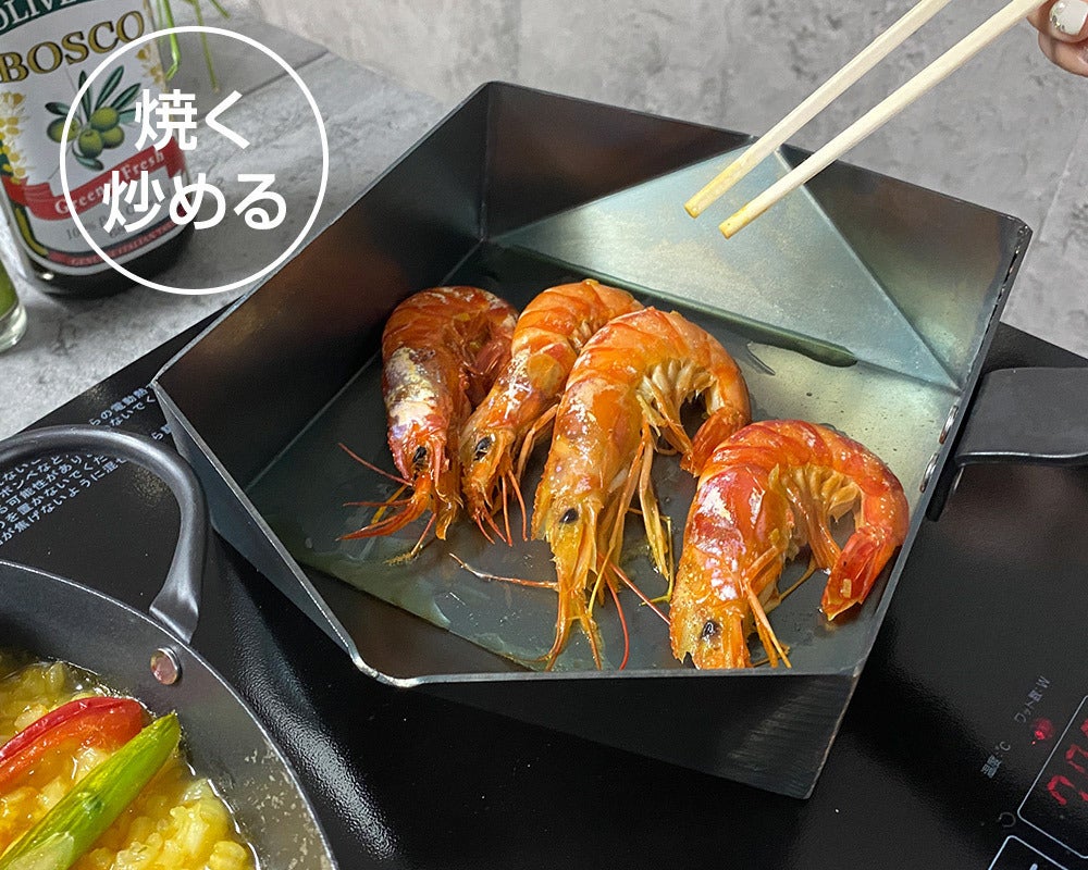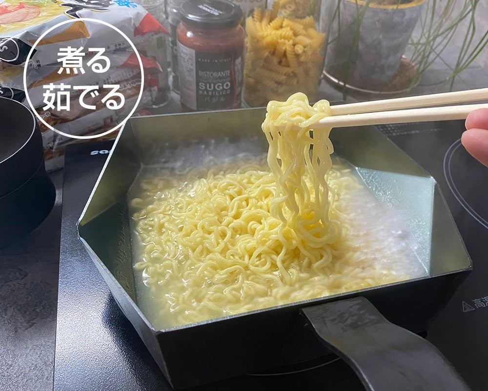 アウトドアの際は少しでも手荷物を少なくしたいところです。深型六角形フライパンなら、お鍋といても使えるので便利です。