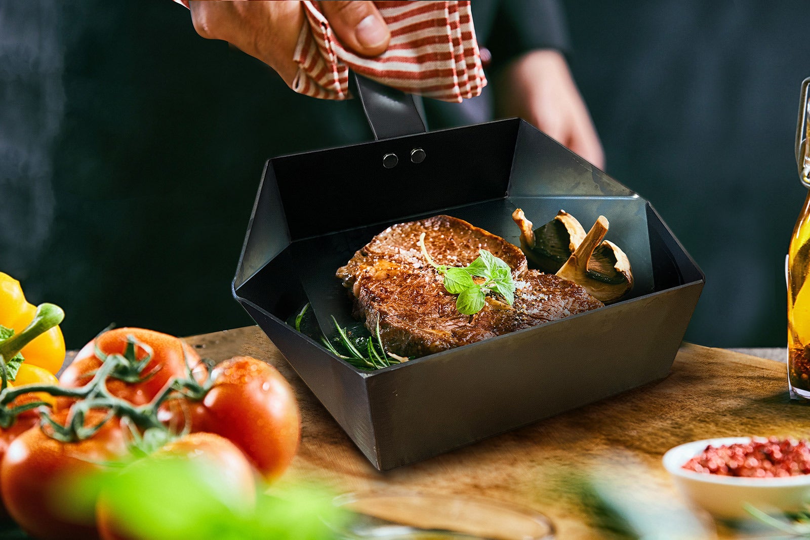 鉄の持つ高い「熱伝導率」と優れた「保温性」で、高火力調理にも対応しています。