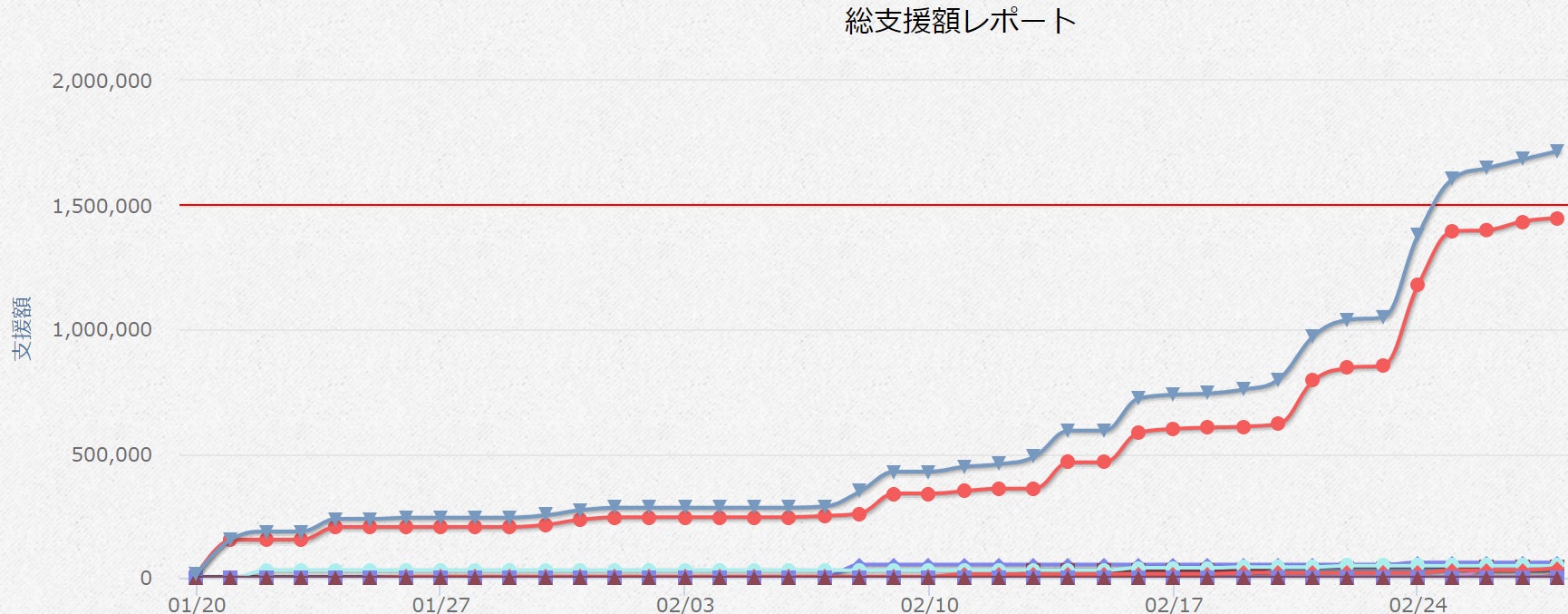 (2月中旬からの猛烈な追い上げが分かる支援額推移のグラフ)