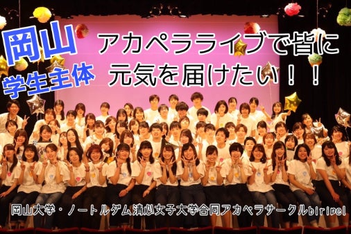 まずは、当サークルのプロジェクトに興味を持っていただき、ありがとうございます。私たちは、岡山大学とノートルダム清心女子大学合同アカペラサークルの”biripel”です。biripelは約100名の学生が所属し、日々活動しています。