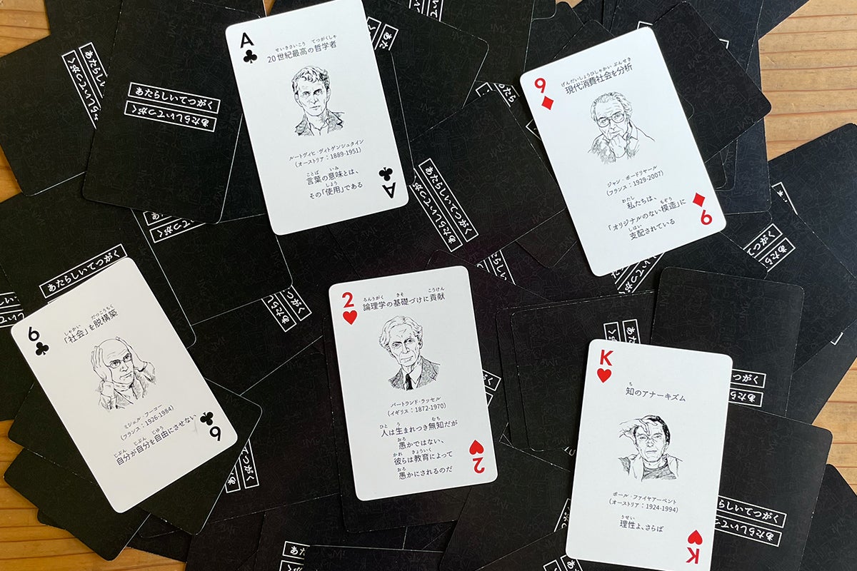 こんにちは、エンパワメントフィロソファーひぐちまりです。おかげさまで、181名の方にご支援をいただき、1560%の目標達成となりました。いつもたくさんの応援をいただきありがとうございます。購入者の方からこんな応援コメントをいただきました。「無宗教が多く自殺の多い現代日本に、今必要なのは哲学ではないでしょうか。大人も子供も哲学が楽しく身近になるトランプ、応援します!」「身近な家庭教育の中で自然と哲学に触れられる機会があるのは大変有難いです。身近なところからその楽しさを広めて行けるように自分自身も学びたいです。」我々がこの哲学者トランプを企画発売した意味や思いが伝わっていることがとても嬉しいです。◆哲学するって何?この哲学者トランプは、もちろん、トランプとしても使えますが、これまでのトランプの使い方だけでなくオリジナルの使い方、活用の仕方、遊び方を創造して頂きたいと思っています。「既存の概念に囚われない」これがまさに「哲学する」力であり「思考力、言語化力、創造力」を鍛えることにつながります。◆哲学者トランプの使い方は?早速、購入者の方からは、「会社でミーティングのチェックイン代わりに、使いたいと思います。」「命題の論破合戦やってみます。思考がめちゃ鍛えられそう!」「コミュニケーションツールとして色々使えそうです。」 と、コメントを頂きました。まさに、こうやって、色々に活用していただくことが思考し、創造し、言語化する力を育てることになります。哲学者トランプには、「あたらしいてつがく」の時代を代表する哲学者の名前と名言が載っています。普通なら、その名言の解説を書きたくなるところですが、あえてそれは書いていません。それは、哲学者トランプを「知識を増やす」ためでなく「思考する」ためのツールとして活用して欲しい!解説を書いてしまうとそれでわかった気になり、それ以上、その真意を考えてみようとしなくなるのではないか、と思ったからです。我々が受けてきた教育は、正しい答えありきの教育です。その教育に慣れ切ってしまうと、答えがないと不安になり、答えを教えてくれる人を求めます。しかし、これからの「答えのない時代」は、誰かの「正しそうな答え」を丸パクリ、借り物の言葉でしか語れない人には、活躍するチャンスはなかなか巡ってこないでしょう。この「哲学者トランプ」の、ご自身で興味を持った名言を調べたり、自分ならどう捉えるか解釈してみるなど、「考える」ツールとして使ってもらえたら嬉しいです。多くの人が「自分らしさ」を求める時代です。でもね、そもそも、自分で考え、自分で創造し、自分の言葉で語ることができなければ、「自分らしさ」なんて、表現できるはずがありません。さあ、哲学トランプで、思考力、鍛えましょう!創造力、発揮しましょう!言語化力、高めましょう!
