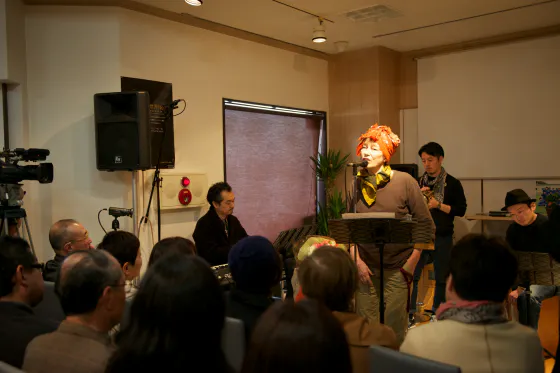 中島ノブユキさんのソロピアノに続き、トランペットの坂口修一郎さんとパーカッションの栗原務さんとともに『ジョニー・ジェーンのバラード』『少女』『ラ・ジャヴァネーズ』を歌いました。