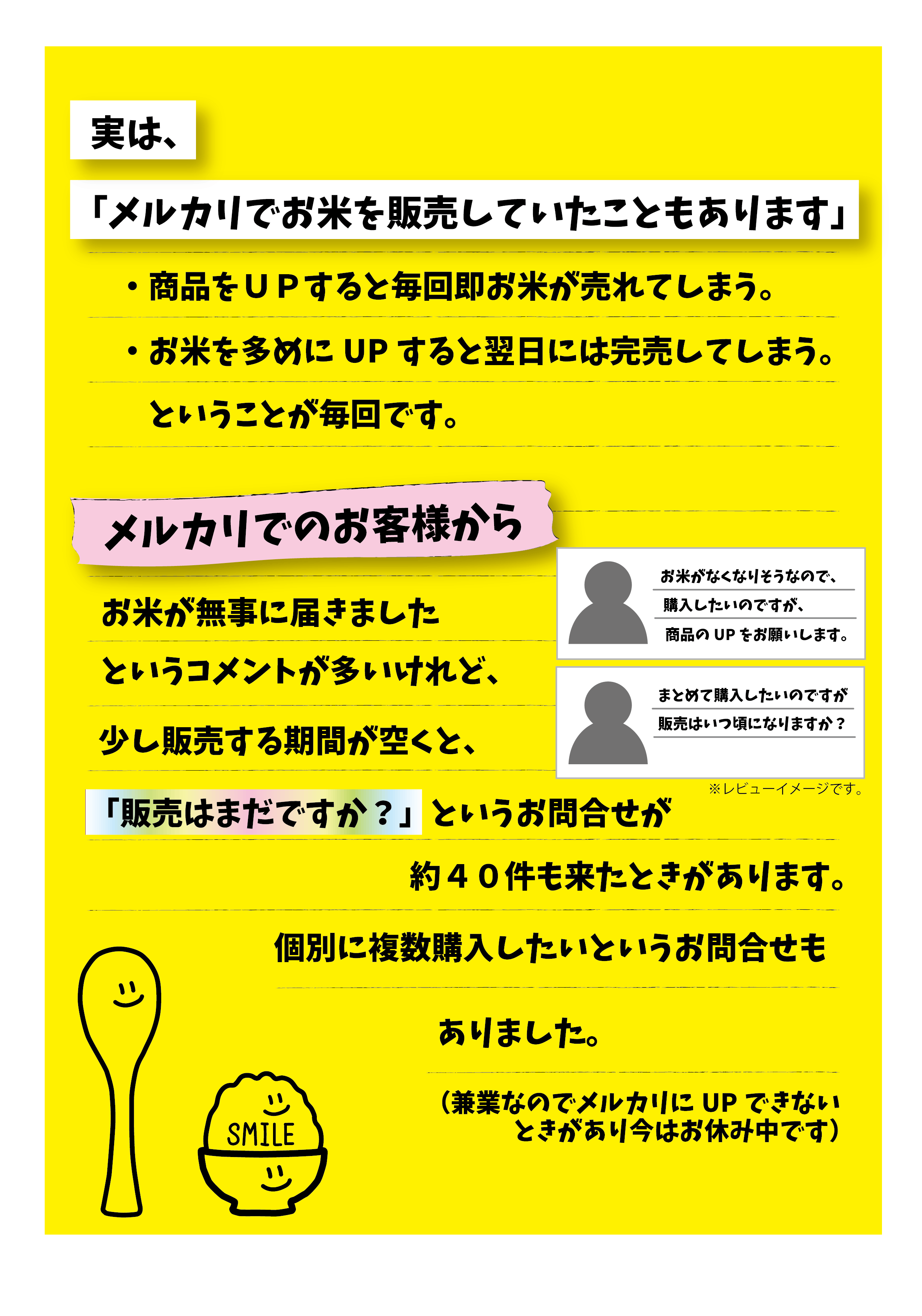 コロナによって、人と人が分断された今だからこそ、スマイル米が人をつなげて欲しいとの願いを込めています。