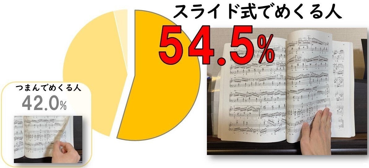 ▲楽譜をめくる際には大きく分けて二種類のめくり方をする人がいることが判明▲