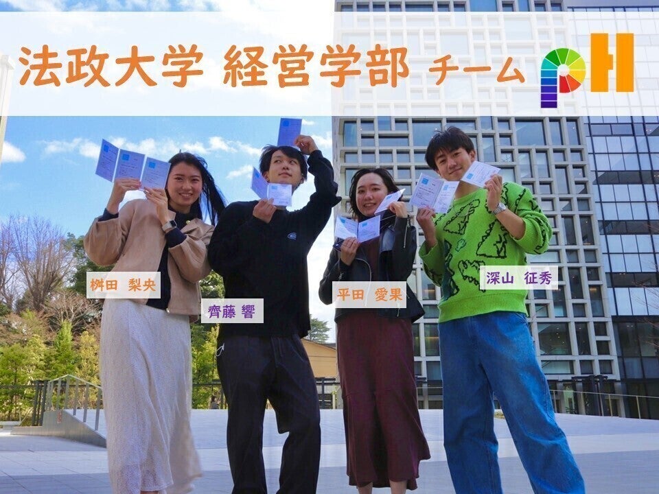 私たちは法政大学経営学部 西川英彦・本條晴一郎ゼミナールの、チーム『pH』です!
