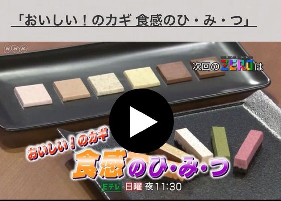 NHKのサイエンスZEROにてフルコースチョコレートが紹介されました。 本日放映された、美味しい!のカギ 食感のひ・み・つにてフルコースチョコレートを取り上げていただきました。 キャスターの南沢奈央さんには、食前酒のスパークリングワインと、お口直しのシャーベットを実際にスタジオでご試食頂き、味だけでなく食感についても驚きを体験して頂きました。 再放送は、3月3日(土)お昼12時30分より放映されますので、ぜひご覧くださいませ。なかなか伝えることが難しいフルコースチョコレートの味・食感を少しでも皆様にお伝えできるかと思います。 味・見た目だけでなく、“食感”も楽しめるフルコースチョコレートを引き続きどうぞご支援のほどよろしくお願いいたします。