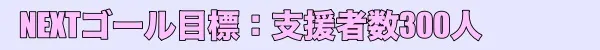知っていただきたいと思っております。ネクストゴール、支援者数300人の目標を設定させていただきました。