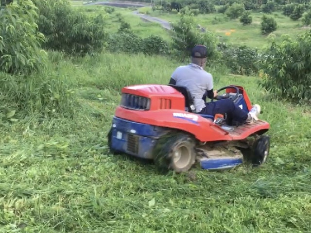 「安心・安全」の観点から、除草剤を使用するのではなく、乗用草刈機を用いて除草し、それらの根を利用して土壌を管理する方法です。雑草部分を残すことによって、よい土壌の流出を防いだり有機物を補給したりする役割があり、エコで地球にやさしい育て方です。