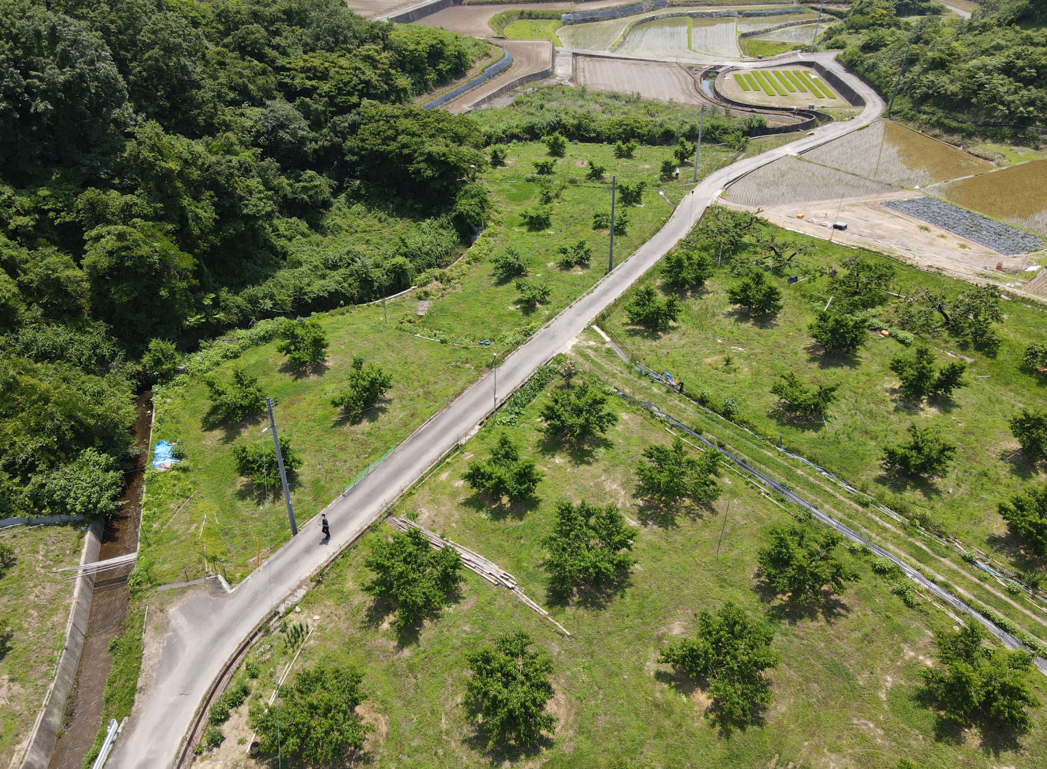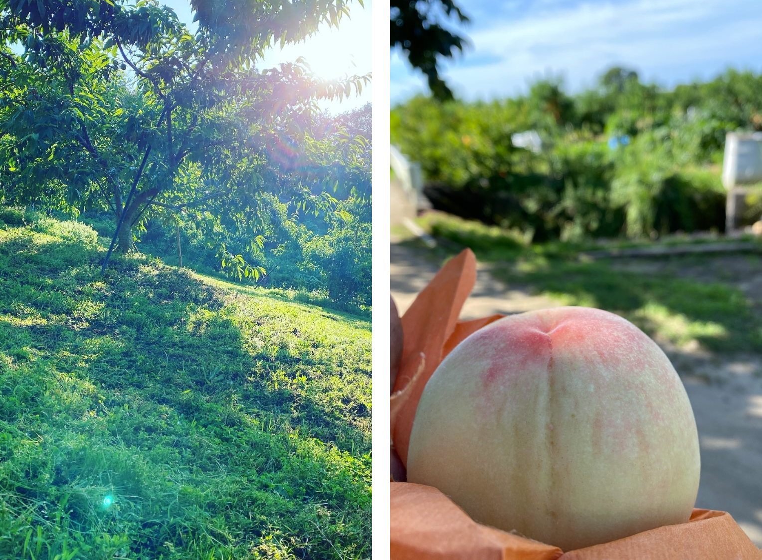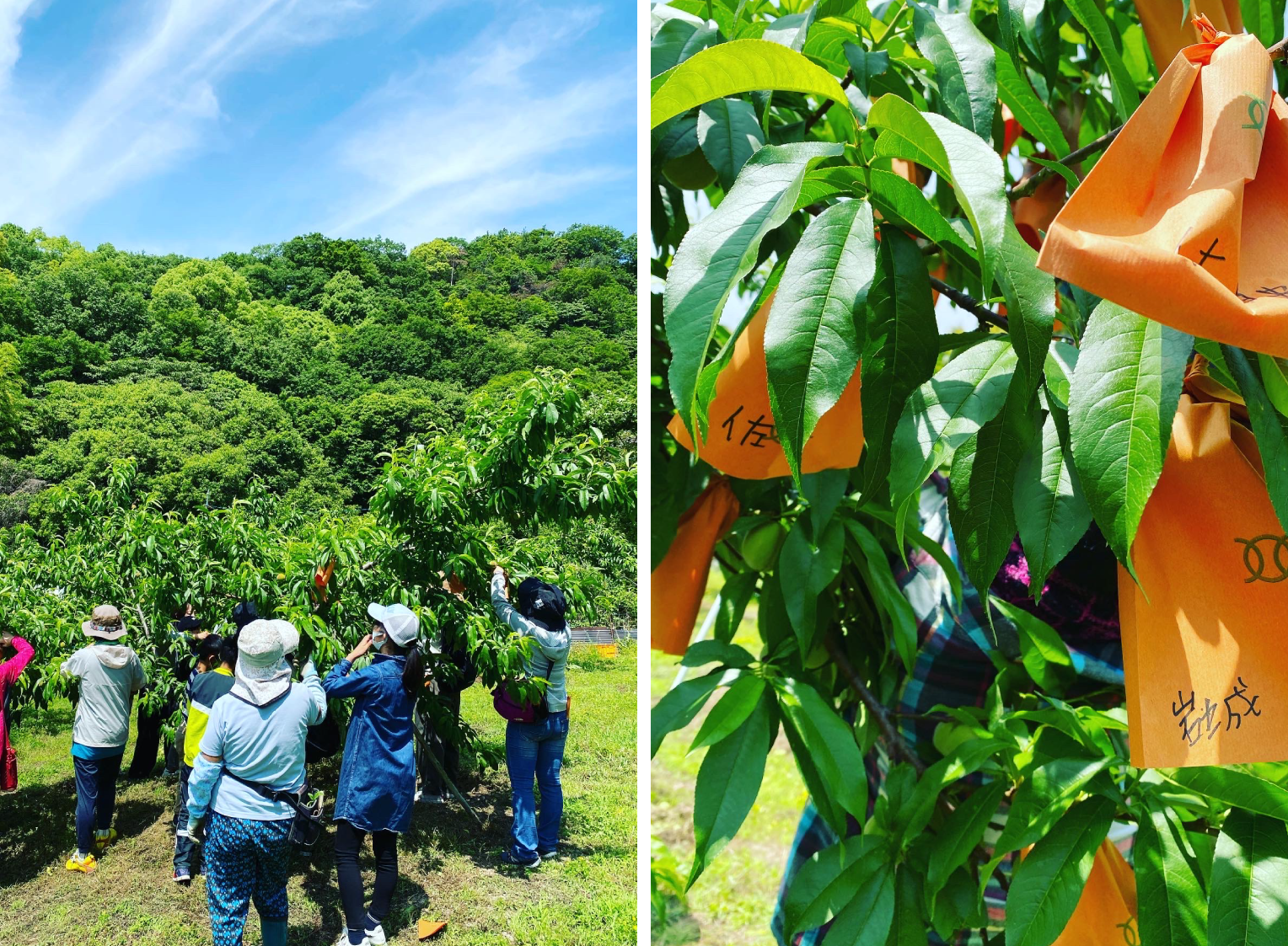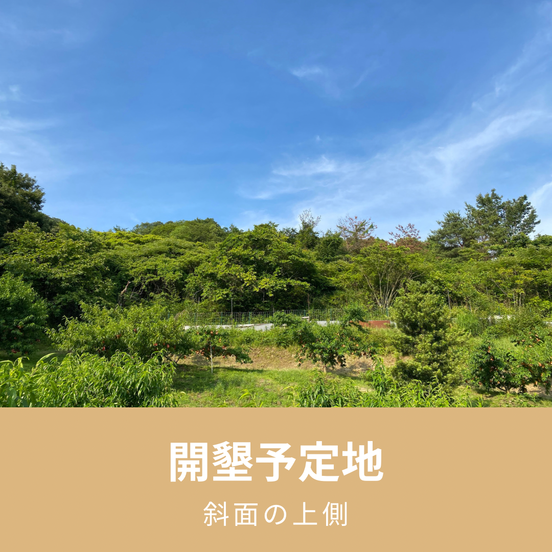 現在、手前の斜面には新規就農するにあたって耕作放棄地を開墾し桃を植えています。
