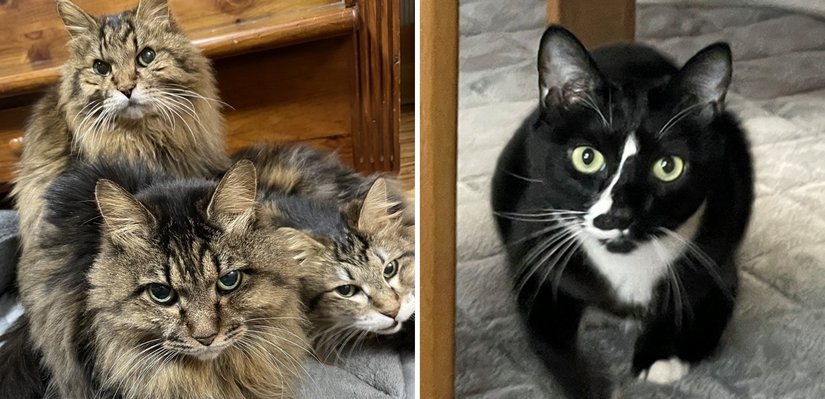「我が家にも猫が4匹おり、みな保護した猫たちです。17歳になる長毛3兄妹は、自宅の裏庭にやってきた野良猫の家族でした。母猫が一匹だけどこかへ連れて行き、仔猫3匹が取り残されたため保護して、もう17歳になります。もう一匹の白黒ハチワレ君は7歳の男の子で、職場で保護した4匹のうちの一匹です。他の子たちもそれぞれ里親さんが見つかりました。