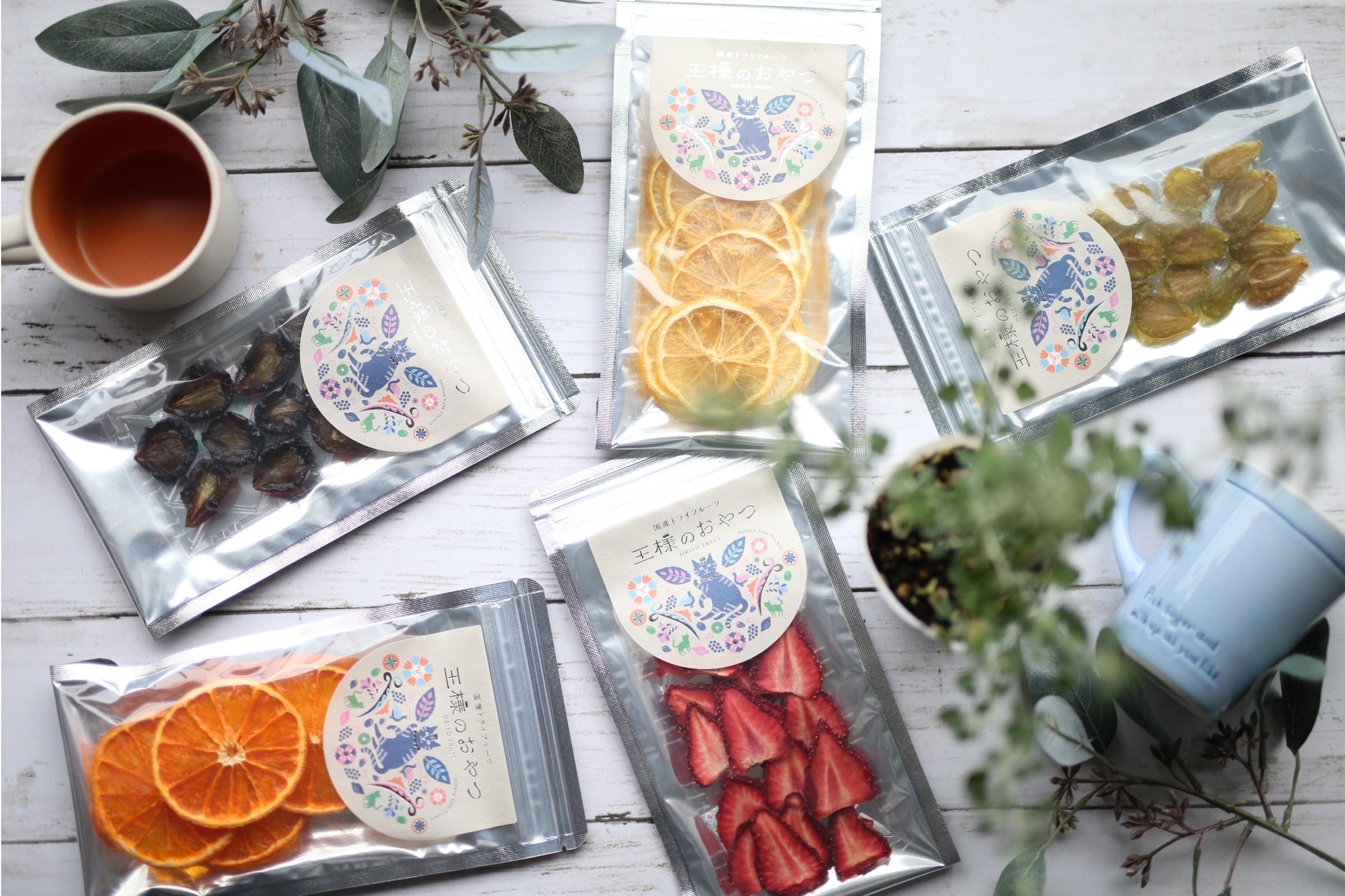 王様のおやつドライフルーツは、岡山・瀬戸内海周辺地域のこだわり果物農家様と提携し、独自製法でひとつひとつ丁寧に作っています。 王様のおやつのメインキャラクターの”ネコ王国のネコ王様“も、ティアハイム小学校の保護ネコさんたちの事を知って、大好きなドライフルーツを多くの方に食べていただくことで、猫の仲間たちをサポートできることをとっても喜んでいます!