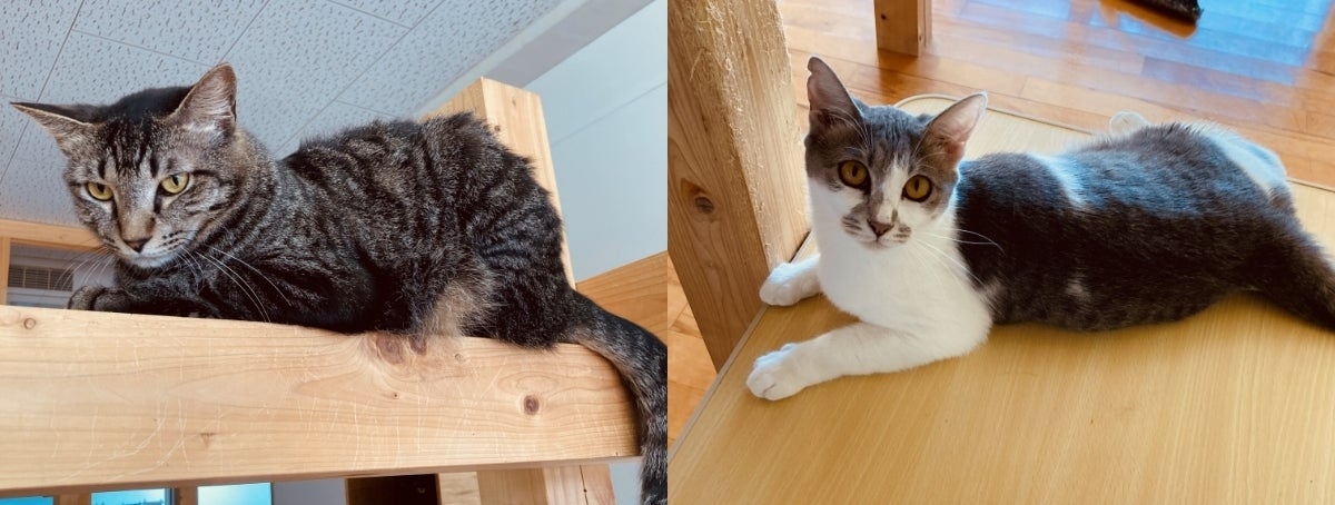 写真左の「ビリー」は神戸の施設から転校してきた、キジトラの男の子。転校前からの育ちの良さか、とっても良い子でした。この度めでたく卒業となり、里親さまのおうちでのんびりと暮らしています。ビリーは三兄弟ですが、兄弟のアンバーも既に卒業していて、残るは黒猫ナイトくん。みんなで幸せになろうね!