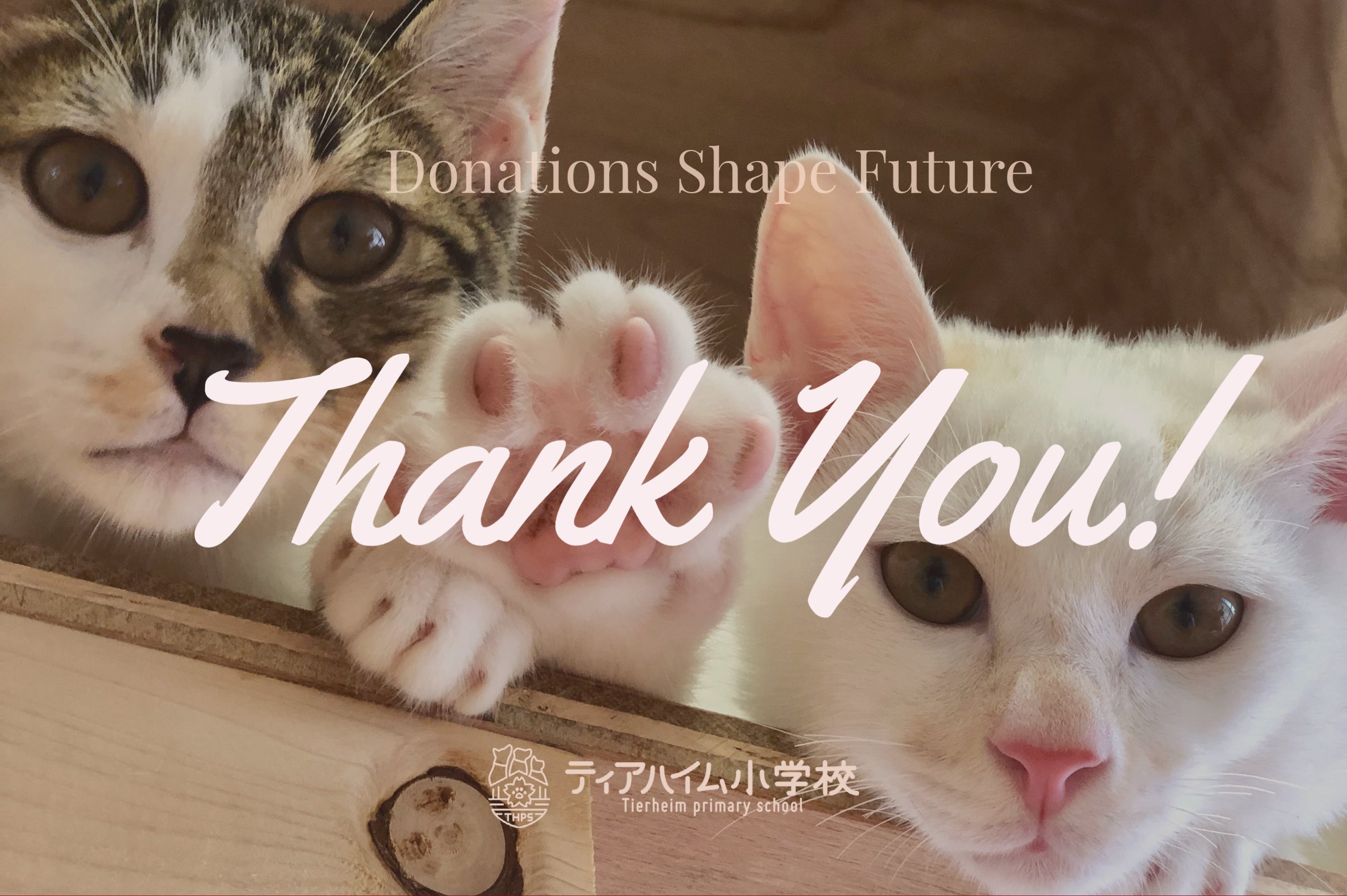 こんにちは、ティアハイム小学校です!この度は、ティア小コラボ「レインボー・カフェ・プロジェクト×ティアハイム小学校」にご参加いただきまして、支援者:174名様 総額:1,406,580円もの多大なご支援を賜りましたこと、誠にありがとうございます!ご参加いただいた皆さま、応援コメントをいただいた皆さま、SNSで拡散いただいた皆さま、そしてプロジェクトの場を提供して応援していただいたGoodMorningさま、多くの皆さまのご支援があっての大成功となりました!私も今回のプロジェクトの企画を始めるまで、障がい者雇用のことや、低すぎる工賃の実態を、漠然としか把握しておりませんでした。同じように、保護猫活動の実態を漠然としか掴んでない方も、世間にはまだまだ多くいらっしゃると思います。・まずは知ること。・そして、自分に出来ることをやってみること。今回私が再認識したこの2点が、皆さまの心にも灯っているからこそ、今回の成功があったのだと思っています。ともに歩み、ご参加いただけた皆さまには感謝が尽きません。ありがとうございます!より良い未来に向かってみんなで進んでいる、そんな実感がありました。皆さまからのご支援金は、障がい者雇用のためと、保護猫施設の運営のために、余すところなく有効活用することをお約束いたします。リターンの発送は8月からを予定しています。少し時間が空いてしまうのですが、頑張って準備して参りますので、お楽しみにお待ちくださいませ☆(またこの場で進捗をご報告いたします)それでは皆さま、ご支援、本当にありがとうございました!リターン到着まで、もう少しお付き合いください!