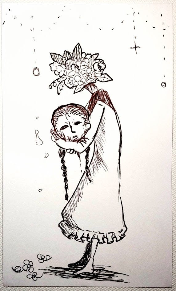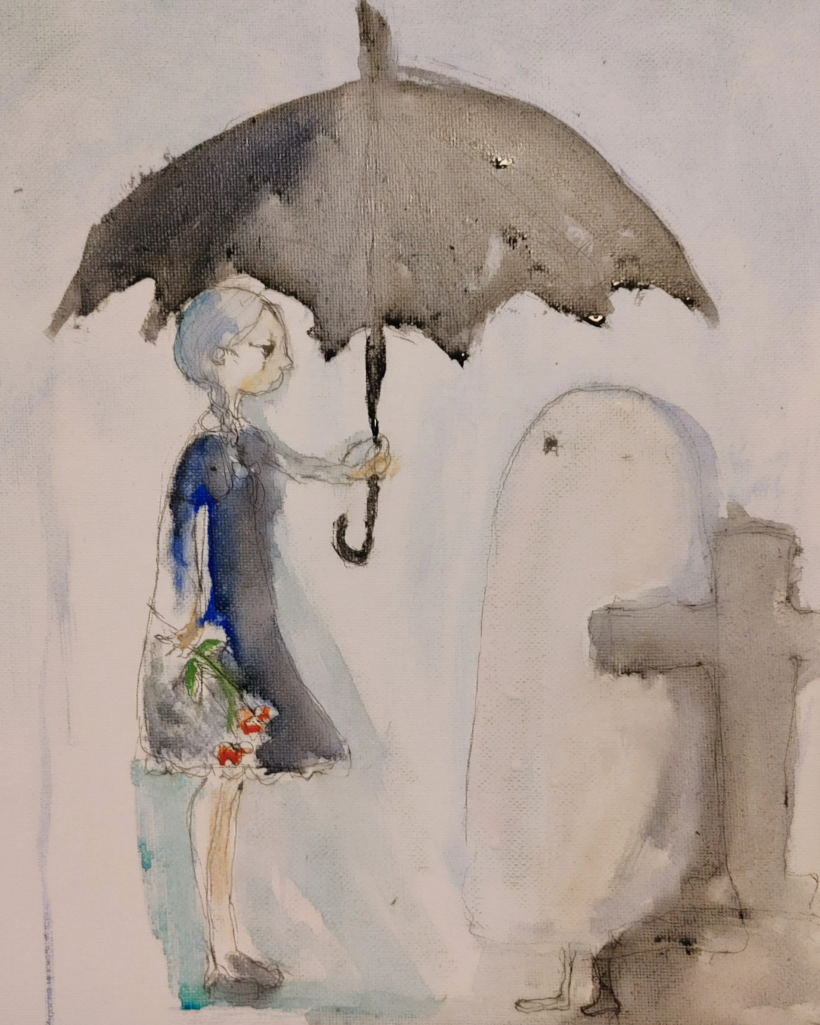 2023/05/30 11:52本日は制作風景と併せて作品のコンセプトについて少しだけお話しようと思います。今回、私は「クラムボンのさしえ」という絵本を制作しております。挿絵だけが描かれた絵本で、画材にも統一性はありません。話も繋がっていない。「くらむぼん」な挿絵です。この「くらむぼん」が何かは、私から多くは語りません。ただ、皆様もお気づきかと思いますが、宮沢賢治著の童話「やまなし」の「クラムボン」からお名前をいただいています。母が宮沢賢治好きだったことと、出身県が同じ事で、宮沢賢治の作品に触れる機会が多かったのですが、宮沢賢治の作品の中でも「銀河鉄道の夜」「やまなし」「セロ弾きのゴーシュ」は私も母も特に好きな作品であった為、12年前に母が亡くなったその日から、母との繋がりを感じられる思い出のひとつになりました。くらむぼんはそんな繋がりの証明かもしれませんし、全く関係無いかもしれません。全ては白いシーツの中に隠されています。いろいろ言いましたが、少し考えてみたり、お気に入りの挿絵を見つけてみたり、楽しんでもらえたら嬉しいです。それでは、今月はここまで。コンセプトとか語るの下手すぎるので、頑張りたいところです…下に告知ございますので、是非ご覧ください!告知現在、boothにて、こちらの作品に連動した 挿絵風原画ポストカードを販売しています!古い本から抜け落ちた挿絵のページのような仕上がりになっています。購入していただいた方だけが見れる、何かが裏に書いてあるかも?加えて、購入いただいた挿絵を持って、まがいの個展へ来ると!?是非お迎えください!大きさおよそポストカードサイズお値段2000円~2500円(制作方法による値段変動)是非、販売ページをご覧ください!よろしくお願いいたします!https://mm-mgi-rr.booth.pm/ もっと見る経過報告