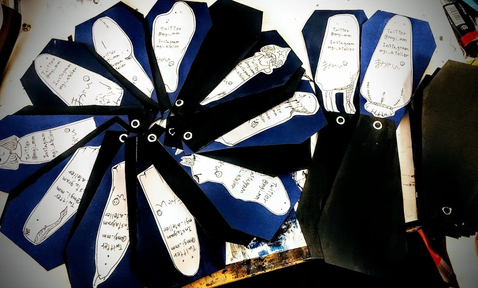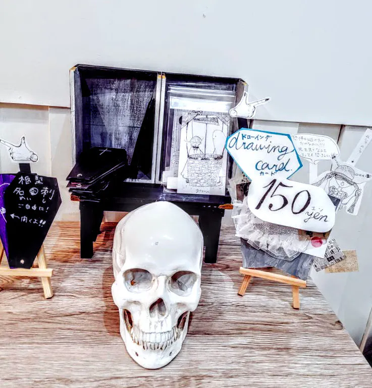 世界観と触った時の面白さが合うように名刺も棺型で開閉するようにして、一つ一つ手作りしています!