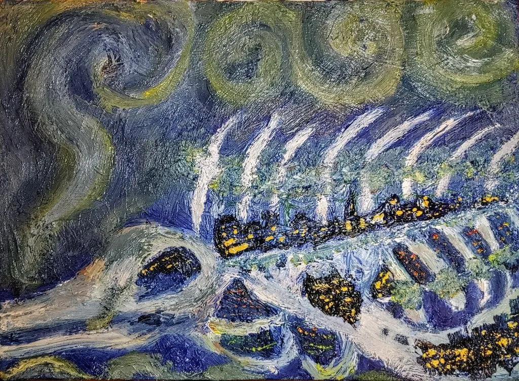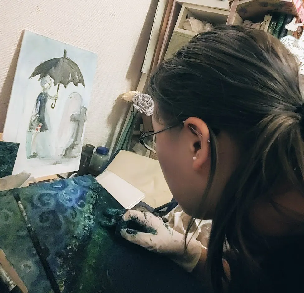 22歳女性、岩手県出身で現在は京都在住で通信芸術大学で学生をしながら油彩、ペン画中心に画家として活動しています「まがい」と申します!