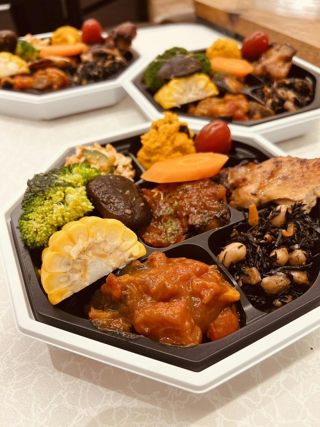 みつばち食堂自慢の甘酒を使用したお惣菜、おかずを贅沢に盛り込んだ特別バージョンのお弁当です。