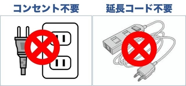 本商品はバッテリー充電式を採用。近くにコンセントがなくても問題ありません。お近くの駐車場や広場、オートキャンプ場など、お好きな場所で、いつでもお使いいただけます。