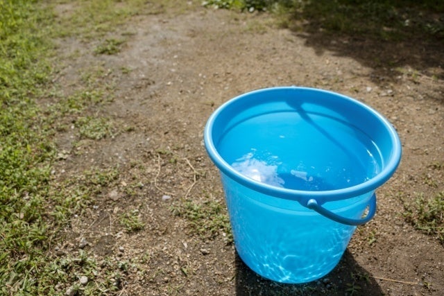 ④水の自動吸引:吸水ホースの先端は水が溜まったバケツやじょうろなどにしっかり沈めます。