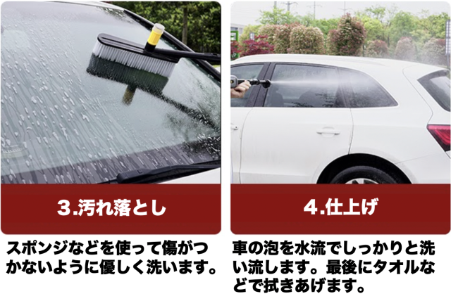 風がなくて涼しい曇りの日がお薦めです。その訳は風が強い日は綺麗に洗ったボディにホコリや砂などがつきやすく、その上にワックスをすると傷がつきやすいためです。また真夏の炎天下ではボディがかなり熱く、洗剤の泡が直ぐに乾燥してシミやムラになりやすいためです。