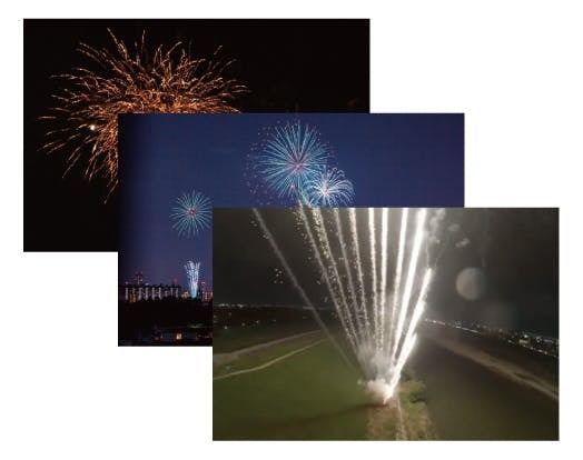 撮影は、ドローンから撮影したもの、打ち上げ会場および遠く名古屋駅を背景にした場所からの3箇所で行います。