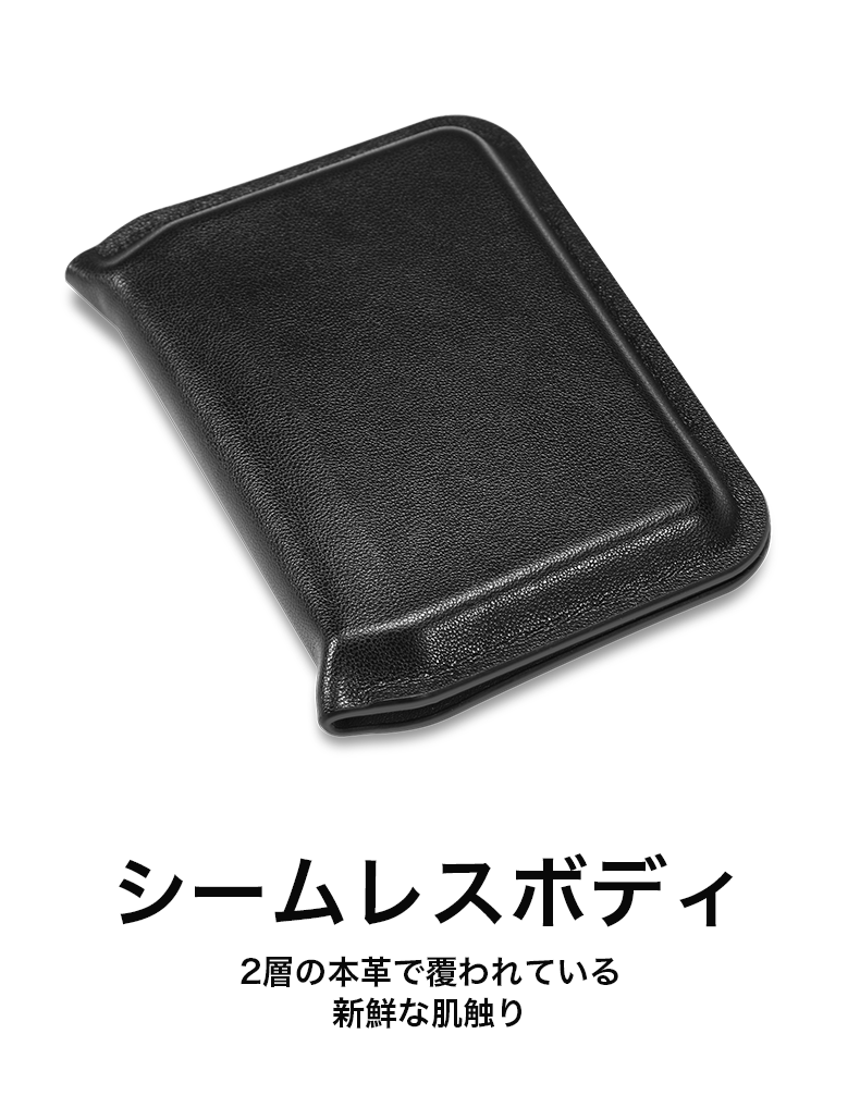 スリムボディながらカードを6-8枚 & 紙幣を収納でき、高品質な本革を2層使用した美しいシームレスボディです。新鮮な肌触りで次世代のミニマルライフを過ごしましょう♪