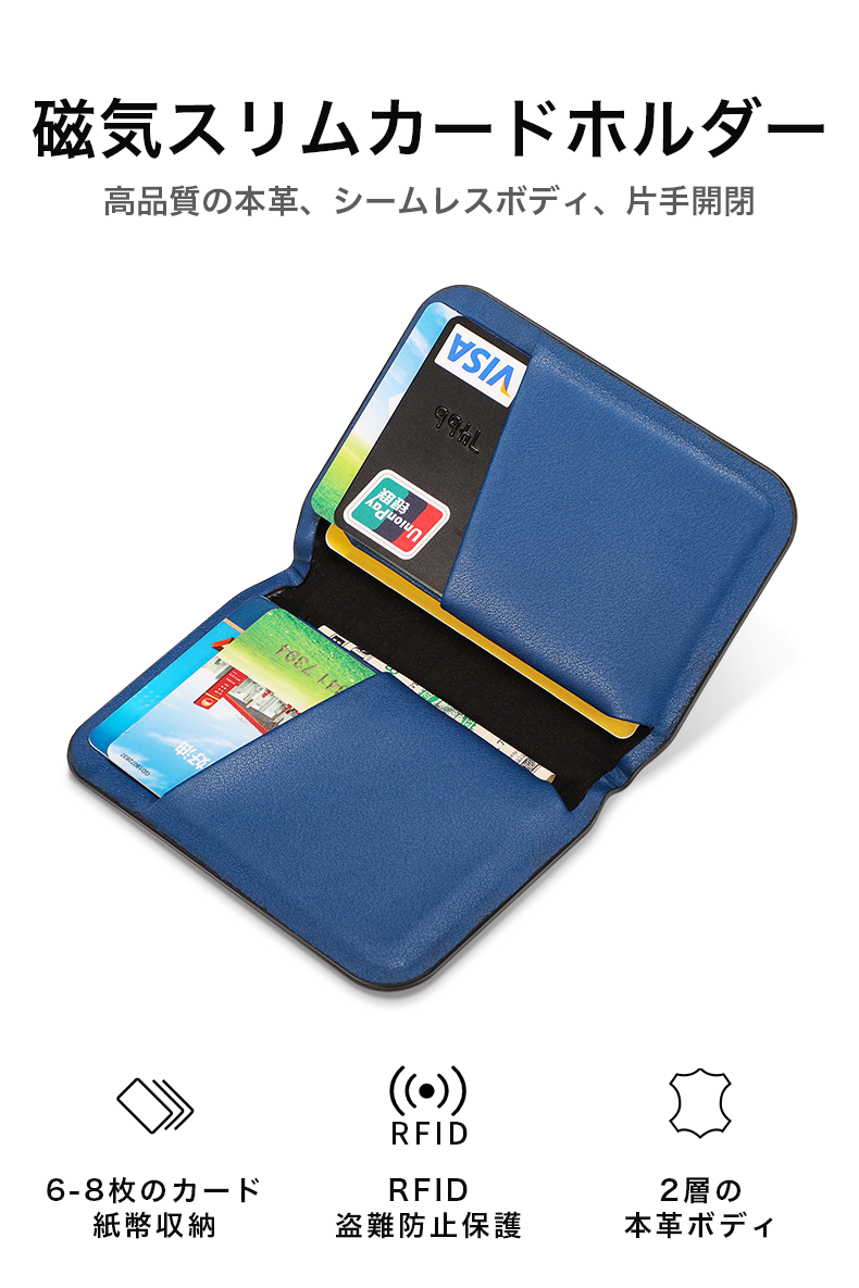 「磁気スリムカードホルダー」は、強力な磁気で片手開閉ができる手のひらサイズのカードホルダーです!