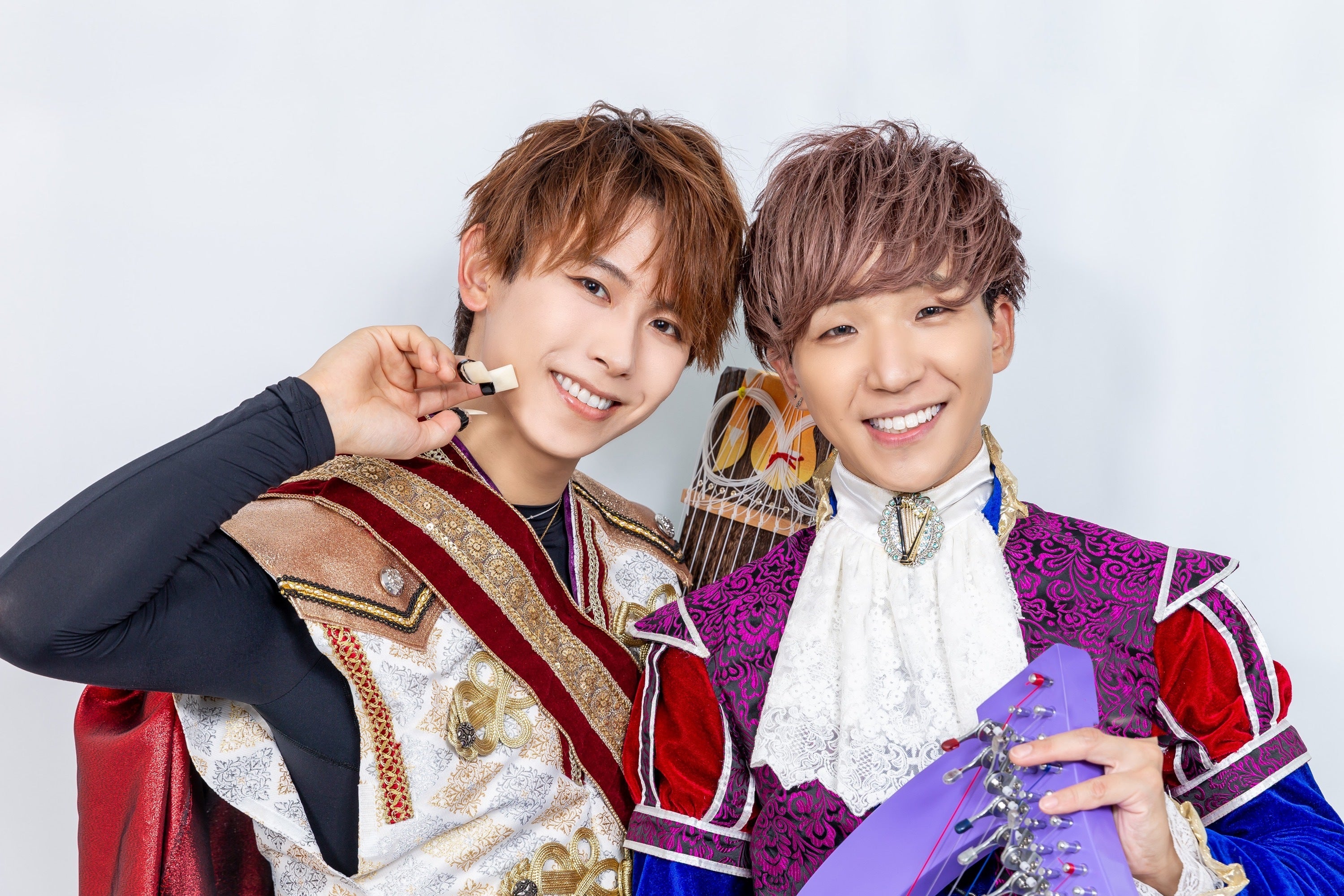 本プロジェクトを企画した、箏奏者の大川義秋(おおかわ よしあき)と、ハープ奏者の小林秀吏(こばやし しゅうじ)です。