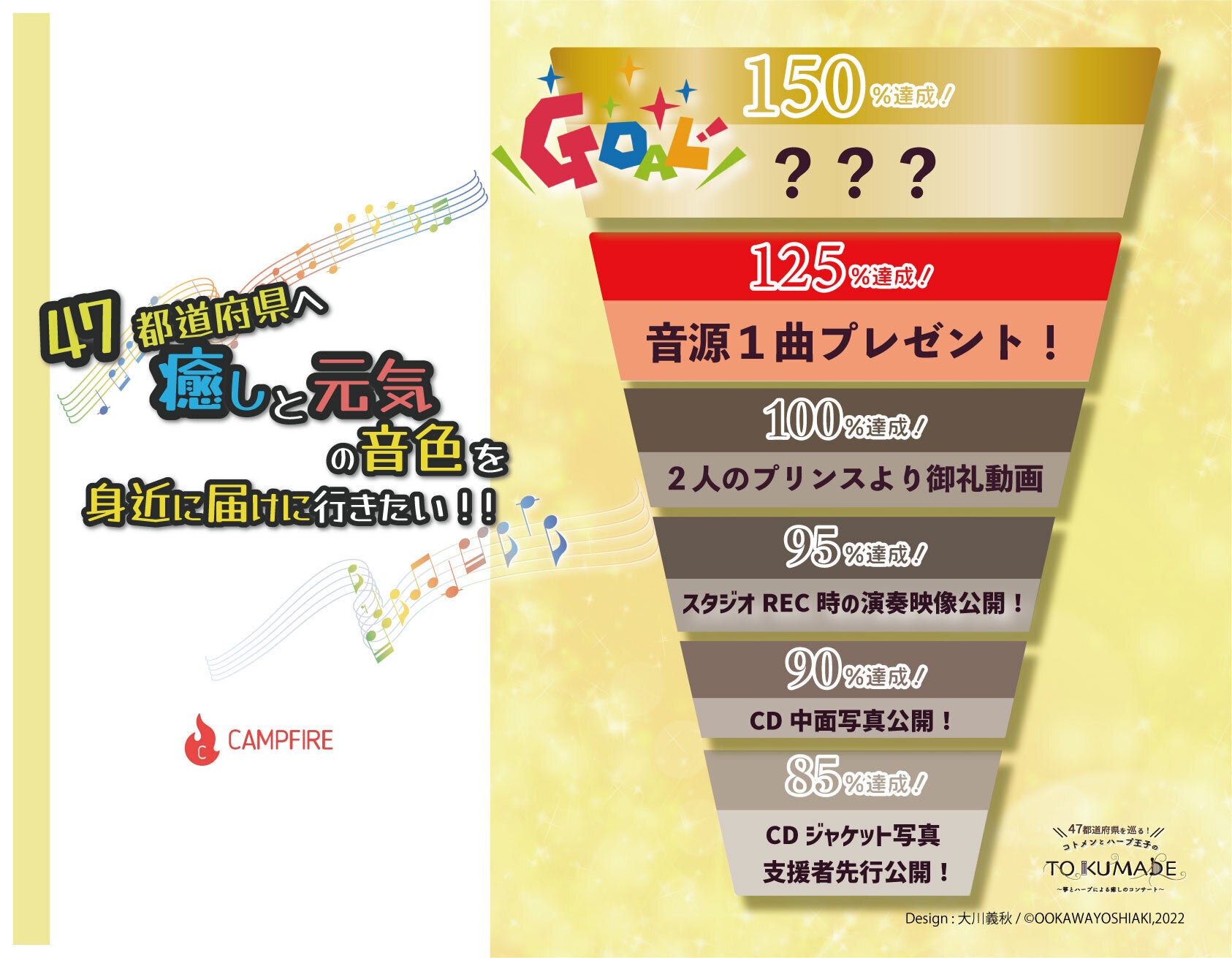 こんにちは!いつも応援ありがとうございます!!大川義秋です。なんと、クラファンが120パーセント超え!!!!ありがとうございます。47都道府県を周るということが初めてですのでハープ王子、スタッフとスケジュールを組んでいる中で演奏面以外にも費用面など勉強になることばかりです!そして、間も無く始まるツアー1本目の9月19日大阪公園に向けて打ち合わせも楽しく進んでおりますのでお楽しみ♫125パーセント達成したら、とある音源をプレゼントさせていただきますね!拡散ご協力ありがとうございます!