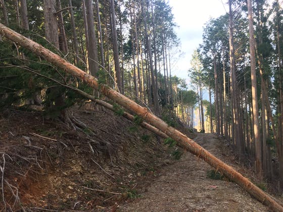 保険や補助なども適用ならず自腹で森林組合や専門の業者に委託しての風倒木処理となります。