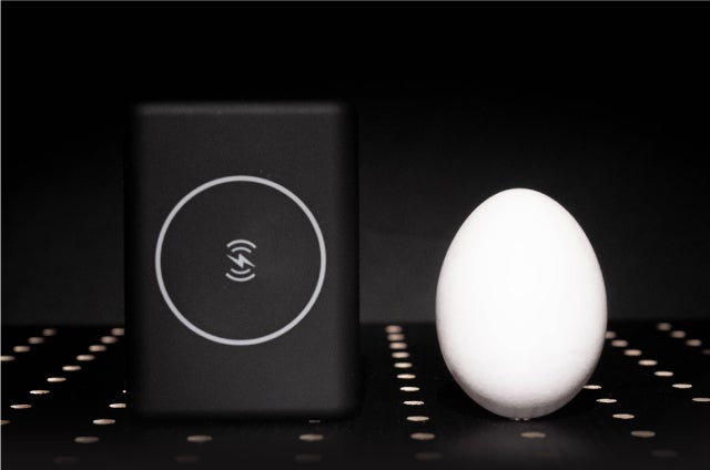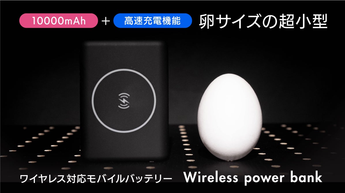 【Wireless power bank】は縦横比が77×56mmとほぼ卵と同じサイズ。