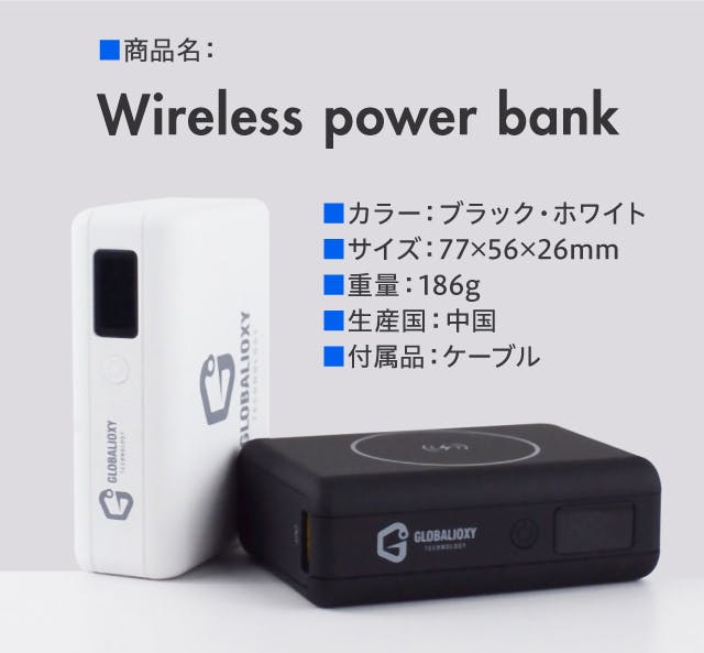 【Wireless power bank】は10000mAhの大容量バッテリーと高速充電機能を搭載したワイヤレス対応モバイルバッテリーです。